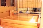『湯』。ホテル花京自慢の、二千年を経た古代檜造りの大浴場で温泉に浸かり、くつろぎのひとときをお過ごしいただけます。