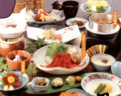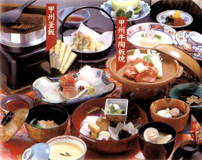 石和温泉郷の笛吹川畔にそびえ立つ六階層の建物が特徴的な和風ホテルです。 紅水晶やひすい等の宝石をちりばめた宝石露天風呂も大きなセールスポイントです。露天風呂と家族風呂を併せて持つ和室造りの客室もあります。眼前に富士山を仰ぎ、南アルプス等周囲の山々を眺めることができるでしょう。 料理も目と舌で楽しめるというコンセプトの元、季節に合ったものを用意しています。落ち着いた雰囲気をお楽しみください。
